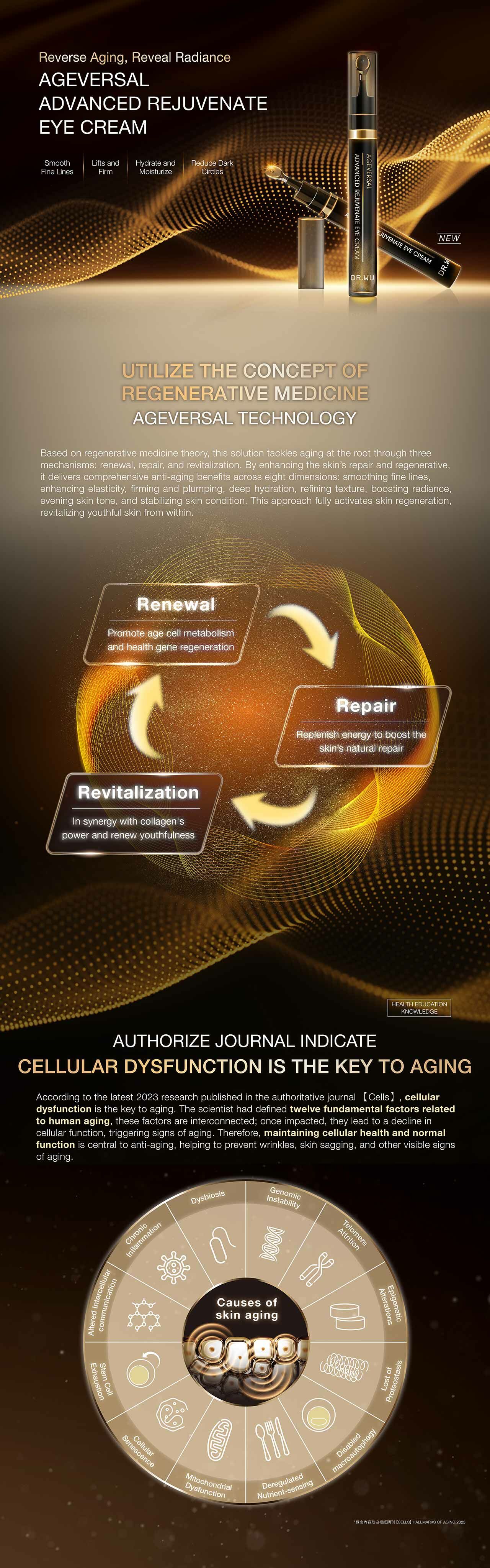 Featuring exclusive "AGEVERSAL Extreme Youth Rejuvenation Technology," based on regenerative medicine theories, it renews, repairs, and revitalizes to combat aging at the root. It enhances gene metabolism and boosts self-repair for youthful, vibrant skin.