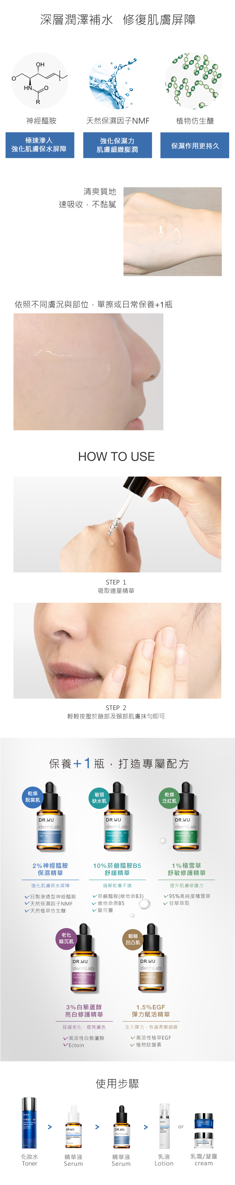 5 types of ceramide can deeply hydrates and repairs the barrier, enhances resistance to external stimulation, and reduces roughness and scaling caused by dryness.
