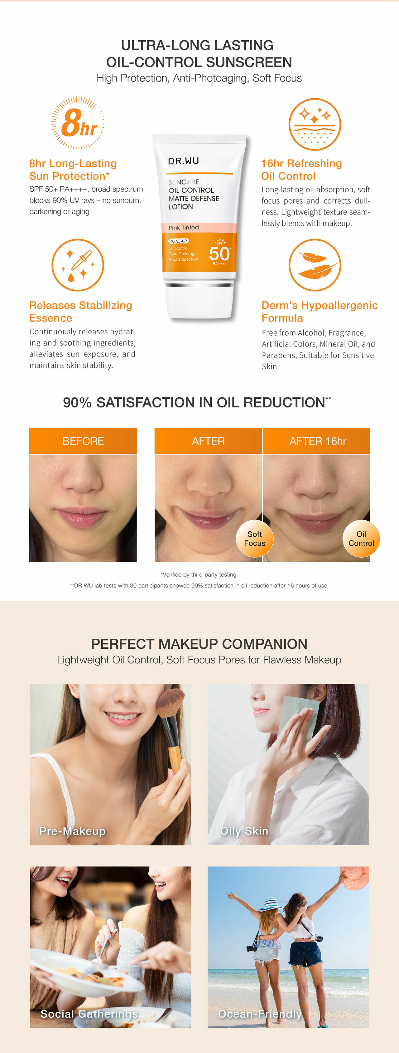 Oil Control Matte Defense Lotion features an oil-absorbing formula that effectively absorbs excess oil, balances sebum secretion, and soothes post-sun discomfort, while providing long-lasting oil control. The tone-sensing technology conceals pore imperfections and reveals a pink-tinted matte finish.