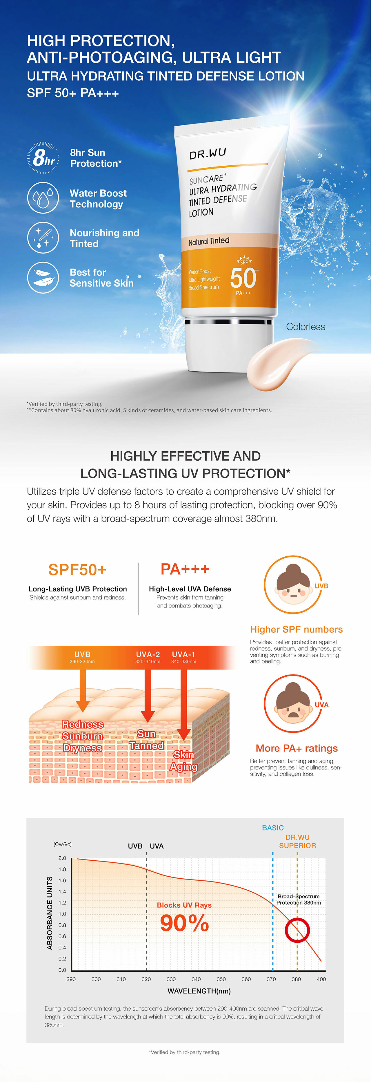 Ultra Hydrating Tinted Defense Lotion features a water-boosting, lightly tinted formula that delivers a refreshing, radiant complexion. It provides broad-spectrum UV protection while hydrating and strengthening the skin with sodium hyaluronate and multi-ceramides.