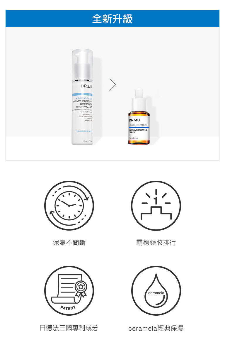 DR.WU INTENSIVE HYDRATING SERUM WITH HYALURONIC ACID is formulated with exclusive patented formula “Hyalucomplex”.