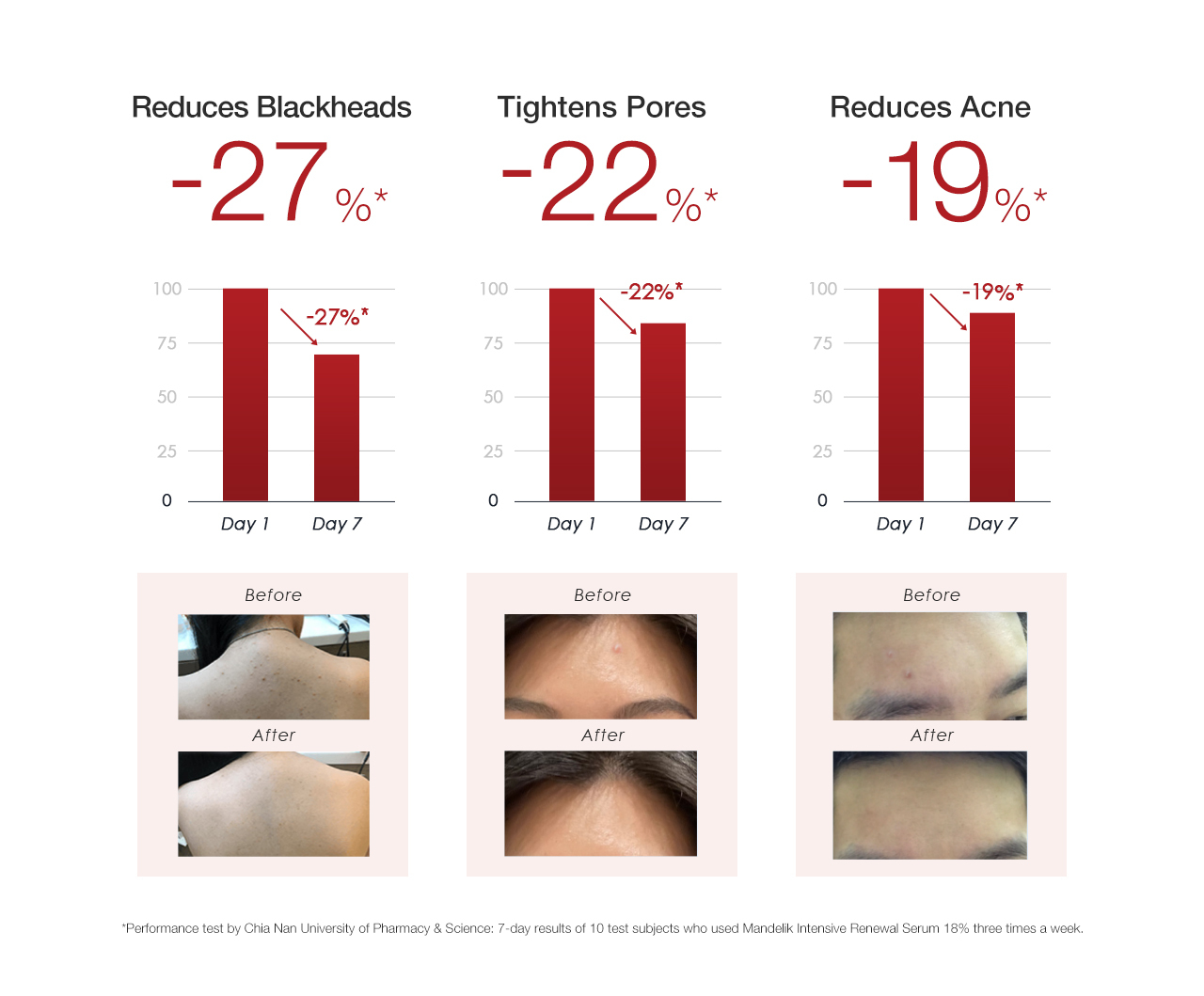 The signature high concentrated 18% Mandelic Acid from the best pharmaceutical company in the world can can remove dead cells and boost skin metabolism effectively to solve all pore issues at once.