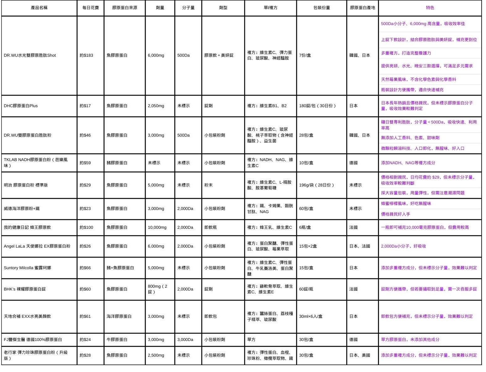 接下來,我們精選市面上13款熱門膠原蛋白產品,從各個面向進行詳細的膠原蛋白比較,幫你找到最適合的選擇!