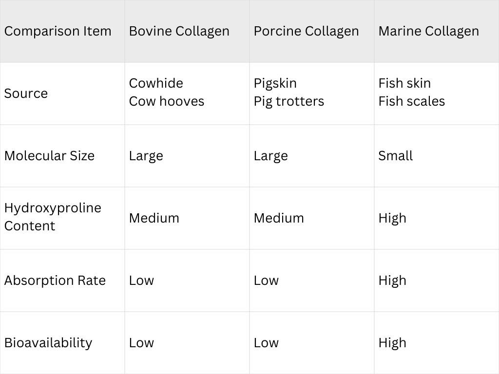 Among the most common sources on the market—bovine (cow), porcine (pig), and marine (fish)—each has its own advantages and disadvantages. Below, we break down the differences between these three types to help you quickly determine which one best suits your individual needs.