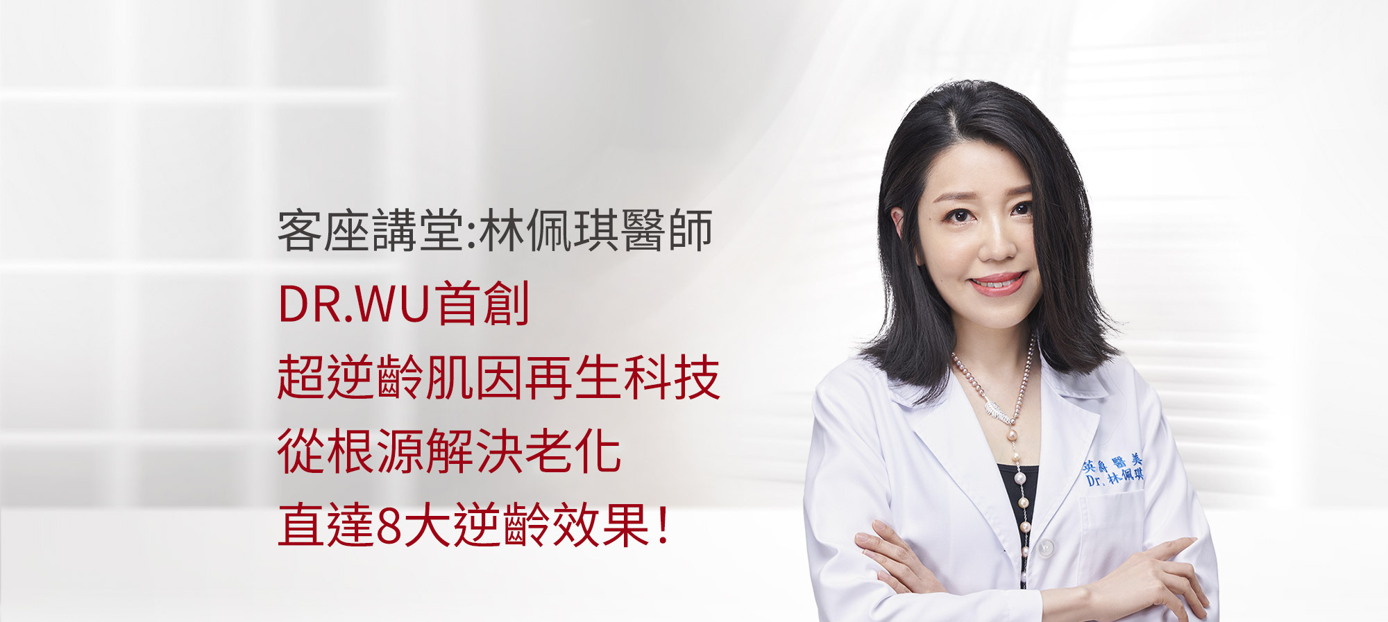 既然人體內有多個恐影響肌膚根源性衰老的指標,並在肌膚上顯現出各種老化徵兆。常見的老化跡象包含:抬頭紋、眼周細紋,貓爪紋、法令紋、木偶紋等八字輪廓線,以及皮膚暗沉、斑點、乾燥、敏感等肌理問題。要有效對抗這些衰老現象,需要從肌膚根源出發,提升肌膚的修護與再生力,先解決老化問題,再達到逆齡效果。而DR.WU「超逆齡肌因再生系列」就是以再生醫學理論為基礎所研發的抗老產品,首創「超逆齡肌因再生科技」透過「煥新、修復、賦活」三大機制,先促進老廢角質代謝,接著為肌膚補充能量、促進天然修護力,最後偕同膠原蛋白作用提升肌膚再生力,從根源有效解決老化問題後,接著達到撫平細紋、彈嫩肌膚、緊實飽滿、保濕潤澤、細緻平滑、提升光澤、均勻膚色和穩定膚況等八大逆齡效果。全系列包含「超逆齡肌因前導精華露」、「超逆齡肌因再生精華」、「超逆齡肌因撫紋眼霜」和「超逆齡肌因再生精華霜」四款產品,一年四季、不分男女,全膚質皆可安心使用 。