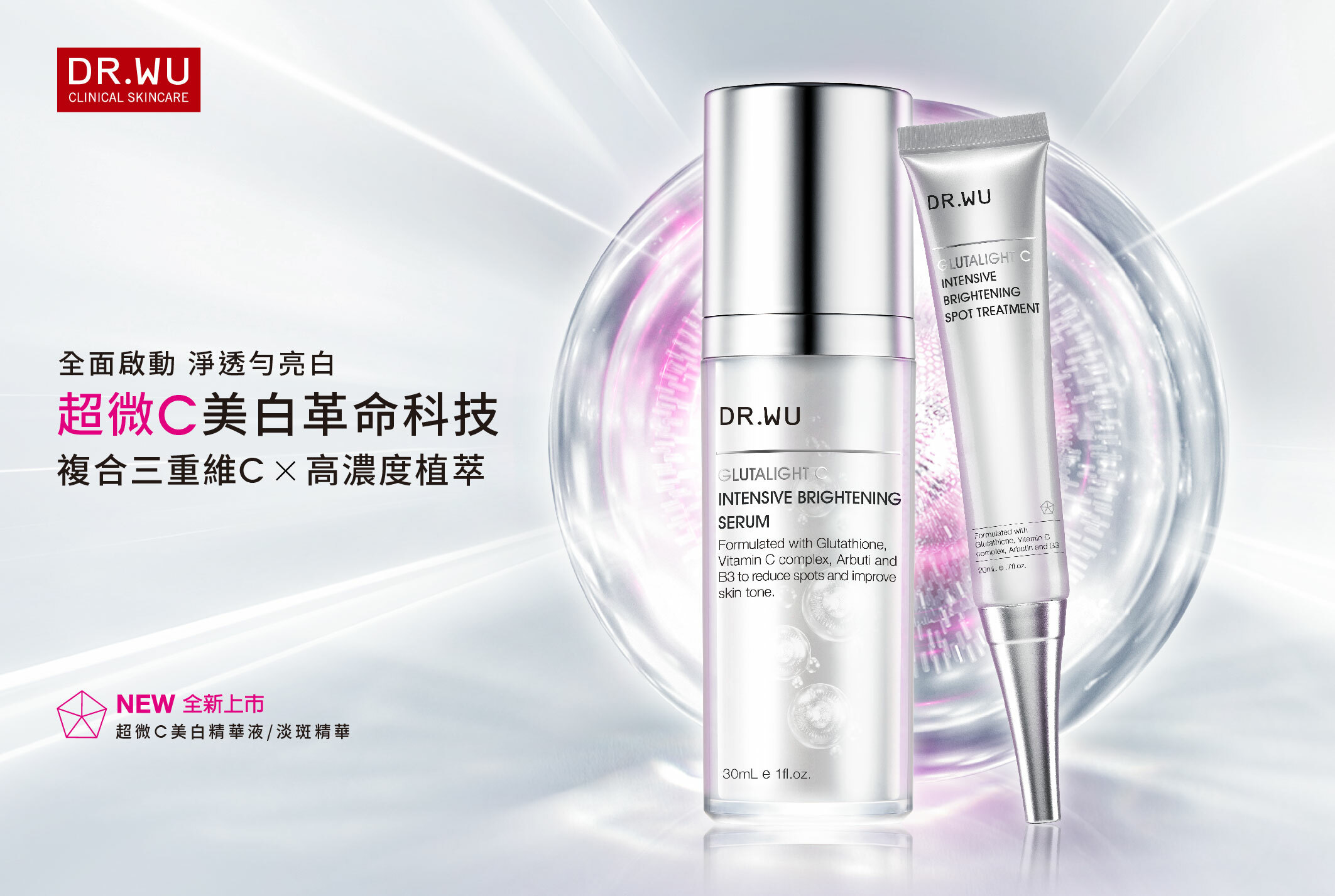 亞洲NO.1醫美保養品牌DR.WU推出【超微C美白】,針對敏感肌膚也適用的膚色問題所設計,完美結合三重維他命C(乙基C、長效C及微脂C)......