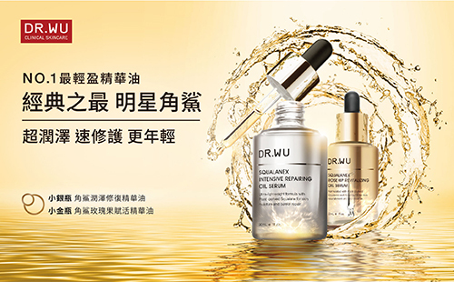 DR.WU經典明星「角鯊潤澤修復精華油」自2013年上市以來就引領精華油市場的潮流,廣受媒體、消費者一致口碑推薦,橫掃多項美妝大賞......