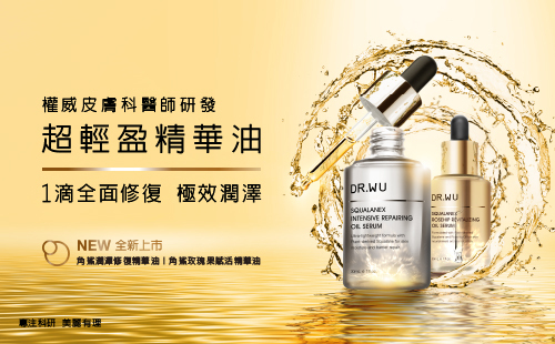 DR.WU經典明星「角鯊潤澤修復精華油」自2013年上市以來就引領精華油市場的潮流,廣受媒體、消費者一致口碑推薦,橫掃多項美妝大賞。