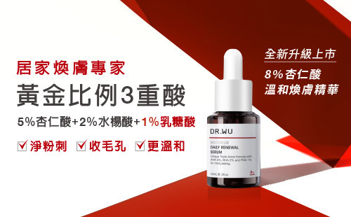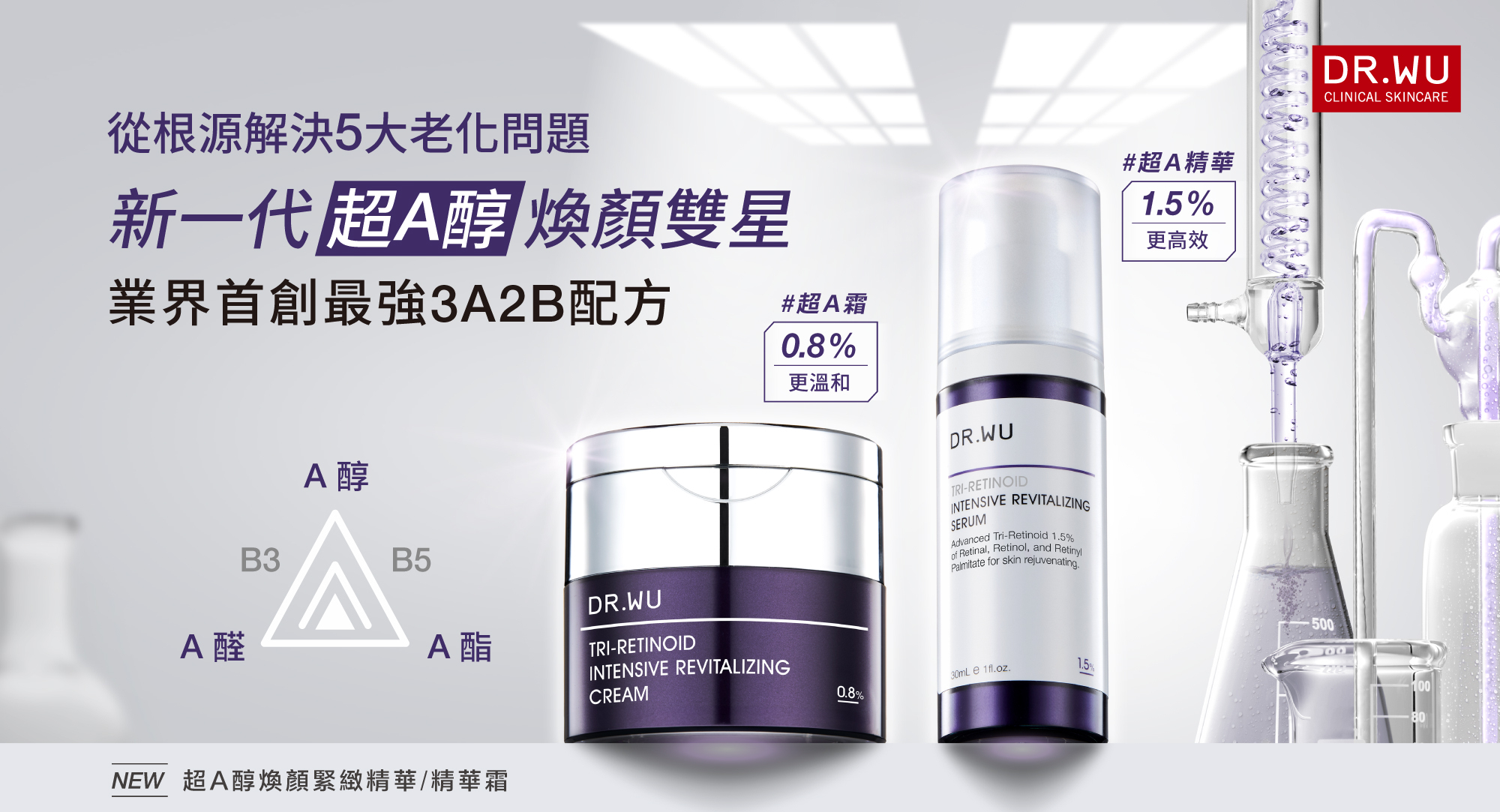 由專業醫師親研的DR.WU全新高效抗老成分【超A醇】首創3A2B配方,完美結合A醛、A醇、A酯與B3、B5......