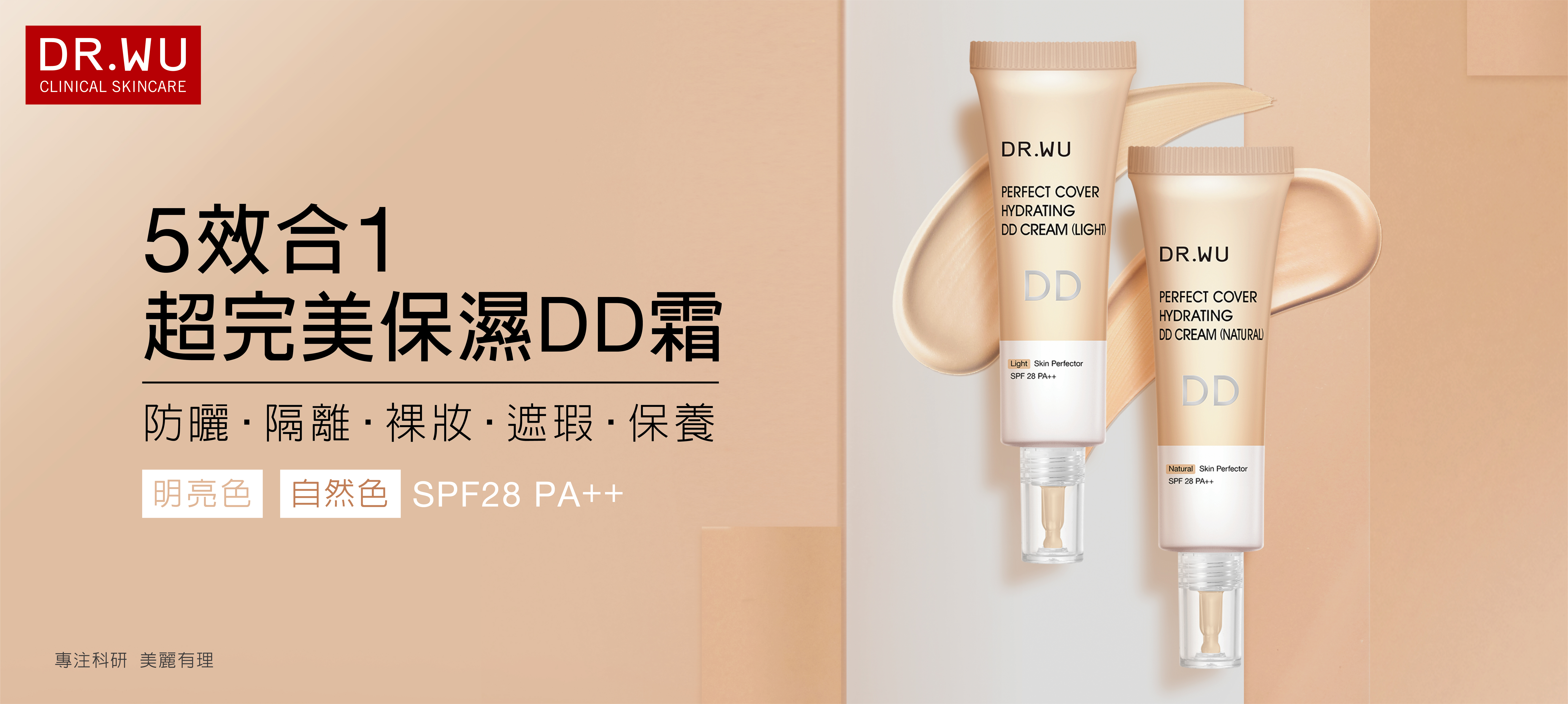 今年DR.WU針對亞洲女性膚質,推出全新超完美保濕DD霜,防曬X隔離X裸妝X遮瑕X保養五大功效一次到位!嚴選韓國親膚技術,一抹瞬間柔焦,神隱毛孔瑕疵,勻亮暗沉膚色,搭配保濕精華成分,長效保濕源源不絕,肌膚自然水潤透亮,成就無懈可擊的完美裸妝。