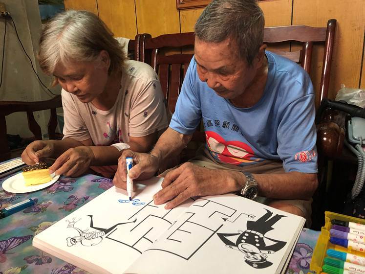 第一位拜訪的是喜愛繪畫的潘阿公,他用親切的笑容迎接同仁們的到來,DR.WU特別送上畫冊與彩色筆跟阿公一起慶祝父親節,阿公現場也大方展示畫功,畫出極有靈性的水牛,並拿出畫冊和相簿,向我們分享生活點滴,當天DR.WU同時也準備了父親節蛋糕,和潘阿公一邊吃,一邊開心聊天,現場氣氛很溫馨,心頭也暖暖的。