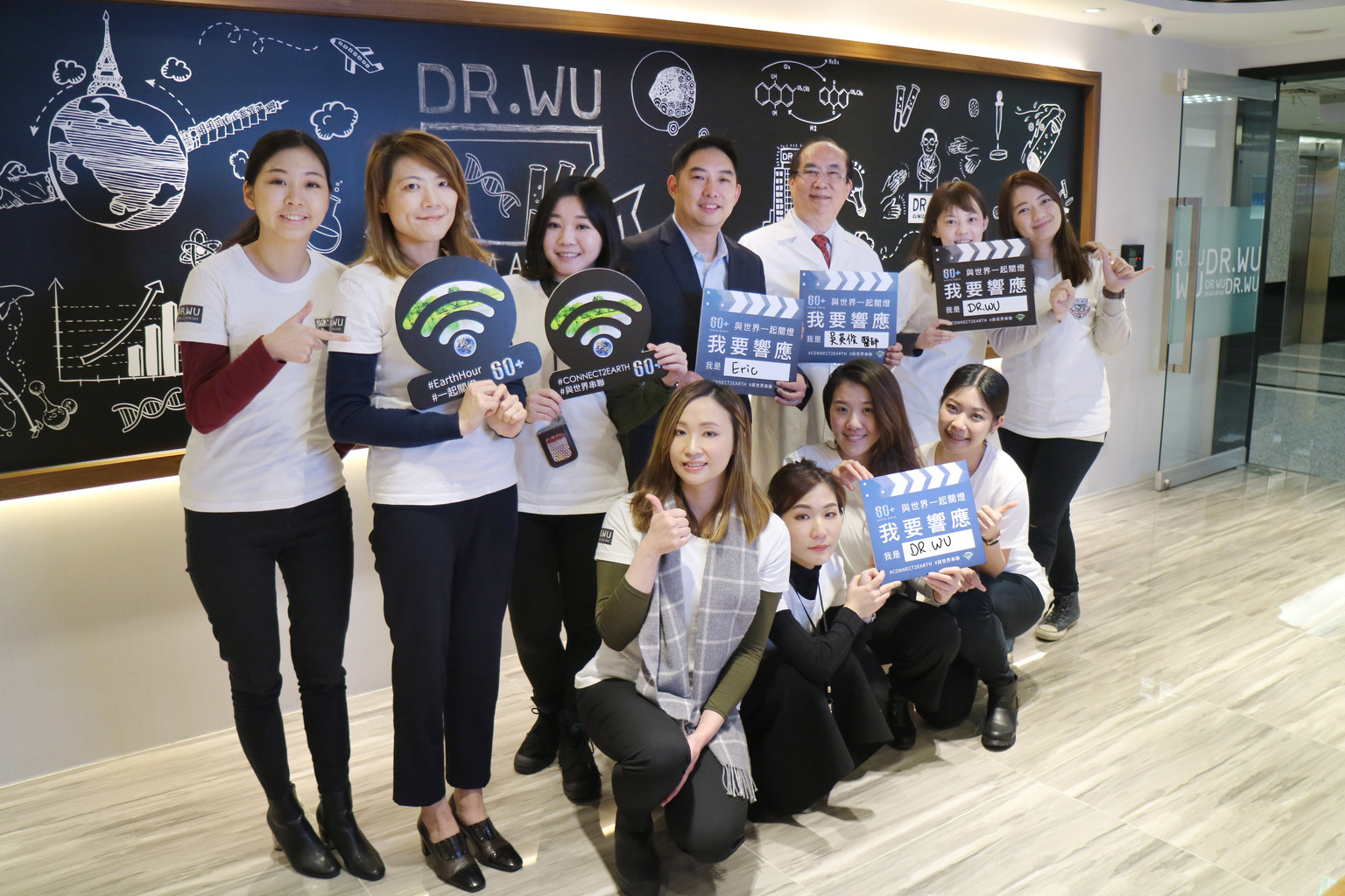 今年DR.WU很榮幸受邀一同響應EARTH HOUR TAIWAN 60+,不僅創辦人吳英俊醫師、董事長吳奕叡與公司同仁手持活動手拿牌一起開心合影外,