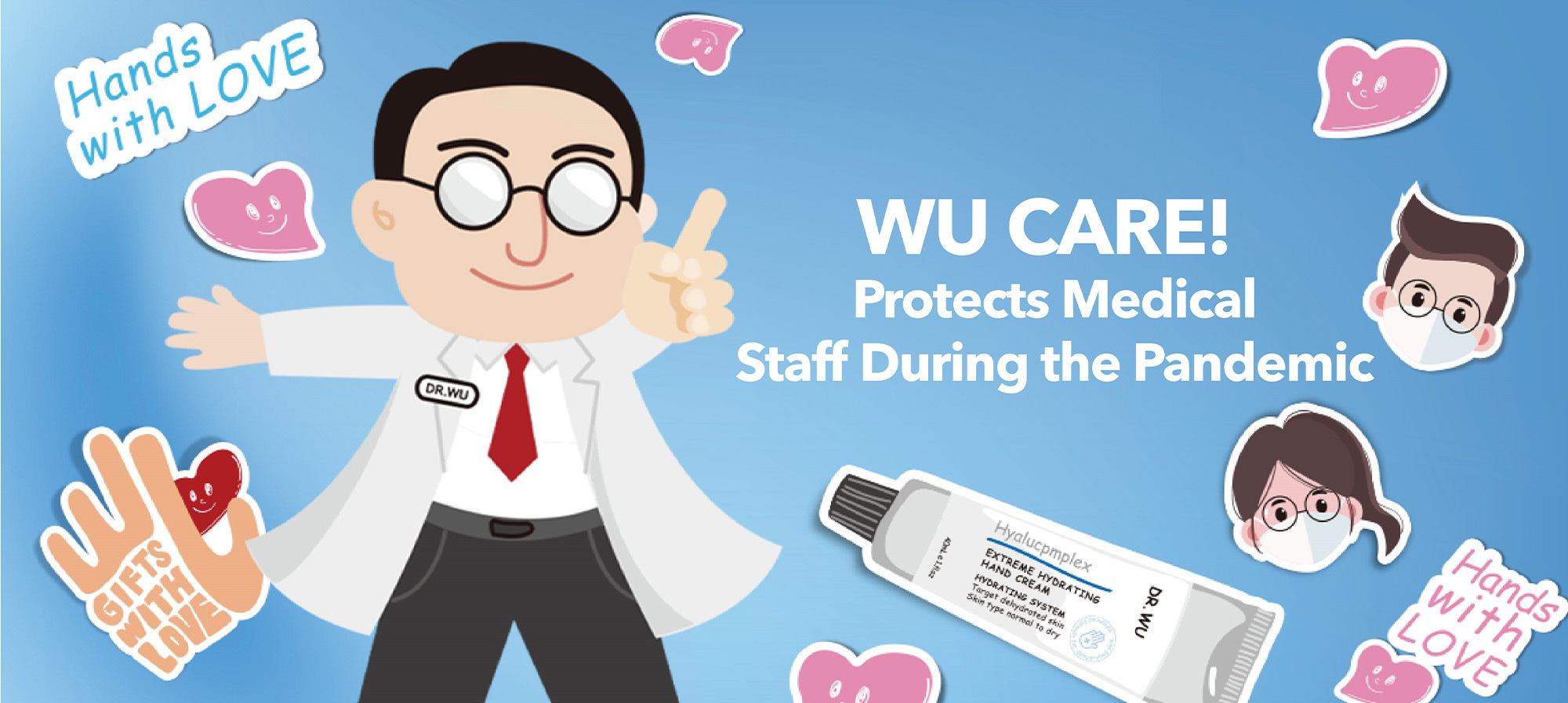 Dry hands, cracked skin, and face mask imprints are just some of the marks that bear witness to how a group of brave healthcare workers have safeguarded the safety of the Taiwanese people. As the COVID-19 situation improves, thereby allowing us to gradually resume our normal routines, we are reminded of the stress that frontline healthcare workers had to go through during this time. The frequent cleaning made their hands dry, rough, or even cracking, and the stuffiness from wearing face masks for extended periods of time made their cheeks itch, leaving redness and imprints behind. The level of discomfort that they put themselves under for the safety of the Taiwanese people is utterly unimaginable. As a gratitude for the selfless contributions of healthcare workers, DR.WU, the No. 1 clinical skincare brand, has introduced a campaign called "Hands with Love" to this year's WU CARE program. Simply write an appreciation card with your own messages to healthcare workers on the event webpage, starting today, and DR.WU will hand-write them into separate cards and sent them to frontline healthcare workers along with "Hand Care Gift Packs." Join us and express our most sincere and warmest care to them*.