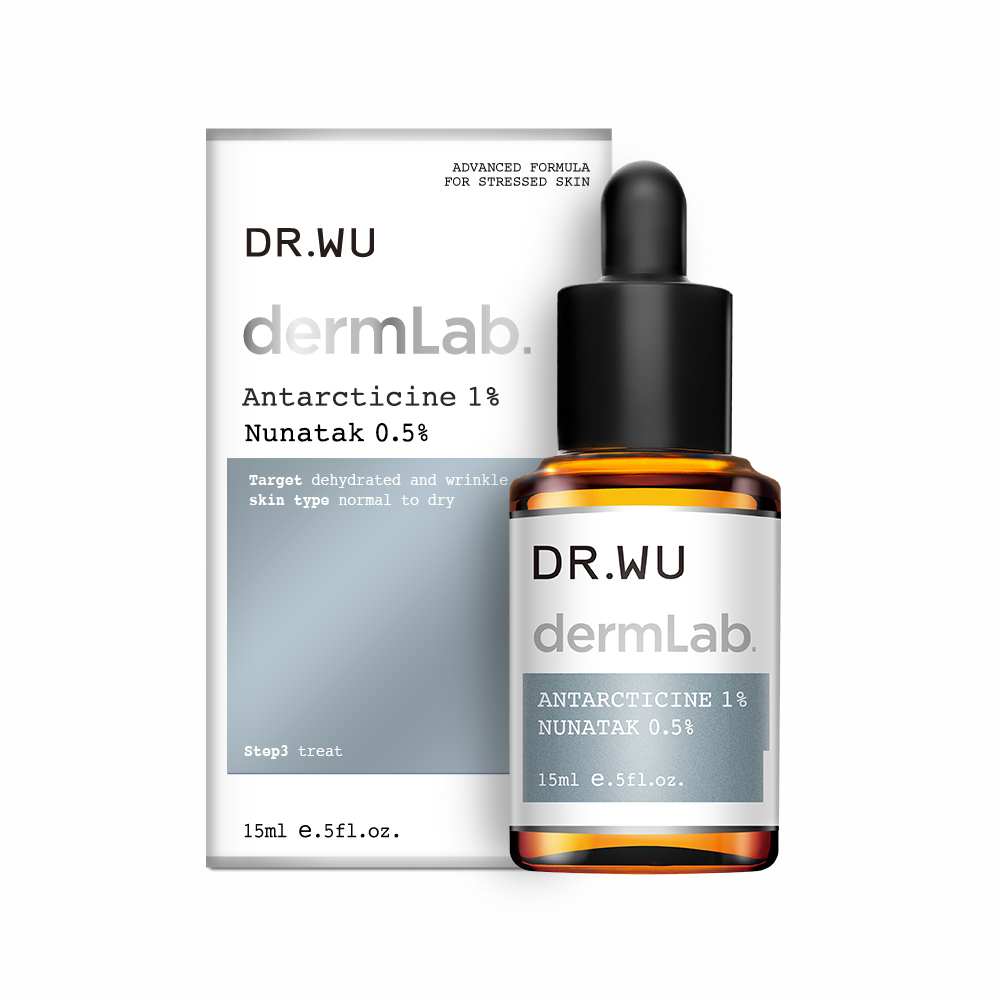 DR.WU 實驗室精華系列嚴選高效能、高純度、高濃度成分,調配出安瓶級高效精華,滴滴高效,精準對解各式肌膚問題。今年DR.WU推出全新1%冰河醣蛋白賦活精華,選用源自南極醣蛋白及阿爾卑斯山高地的石竹珍珠花精萃,雙重極地保濕成分,瞬間強化肌膚保濕力,同步賦活膠原蛋白增生,澎潤乾繃細紋,強化保護屏障,提升肌膚耐受力,強效抵禦低溫、乾燥、紫外線與可見光等環境刺激,延緩老化速率,肌膚更加光滑細緻、澎彈水潤。