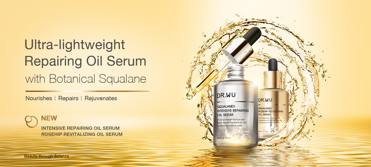 DR.WU's SQUALANEX Repair Series harnesses the power of squalane, a component similar to the skin's sebum film, carefully selected from ECOCERT-certified squalene originating from olive plantations in the southern regions of France. Extracted using 25 stages of 'ultra-micro cold pressing technology,' the oil is refined to meticulous detail, resulting in high-purity squalane with extremely small molecular weight. It is light and easily absorbed, non-comedogenic, and non-acneogenic, ensuring a burden-free experience for the skin! In terms of ingredients, the exclusive SQUALANEX Repair Essence Compound incorporates not only the French-extracted squalane but also threefold essential oils for comprehensive and efficient moisturization. This includes Argan Oil, Macadamia Seed Oil, and highly hydrating Jojoba Oil. Additionally, ‘triple Plant Extracts’, Brown Algae Extract, Lupinus Albus Seed Extract and the Dunaliella Salina Extract help maintain skin’s metabolism to slow aging, enhance elasticity and brighten skin tone.