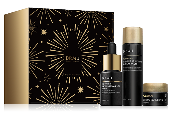 本系列於DR.WU全通路推出「超逆齡肌因再生禮盒」,內含超逆齡肌因再生前導精華露50ml、超逆齡肌因再生精華15ml、超逆齡肌因再生精華霜7ml及精緻小卡片一張,小巧便捷的容量非常適合想搶先體驗超逆齡肌因再生系列的消費者,精美的外盒設計無論自用或送禮皆為絕佳選擇。更值得一提的是,精緻外盒可作為收納盒重複利用,擺放飾品、文具等小物,不僅實用還能為環保盡一分心力!數量有限,售完為止,趕緊把握機會搶購!