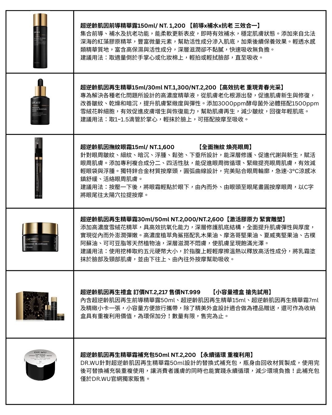 *指超逆齡肌因再生精華霜為DR.WU超逆齡肌因再生系列中雪絨花萃取物含量濃度最高。