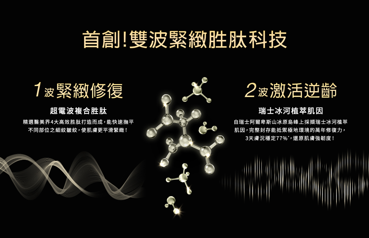 首創「雙波緊緻胜肽科技」!7天年輕一歲 緊緻修復80%*