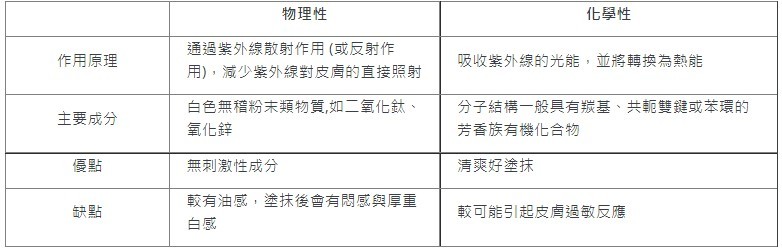 現在市面上防曬產品琳瑯滿目,了解SPF與PA數值各代表的涵義後,可以知道其實不是數值越高代表就是好的防曬,而是依自身需求、生活型態選擇適合自己的防曬產品。市面上防曬劑型又分為物理性防曬與化學性防曬,整體來說,市售大多數的防曬乳多為物理性與化學性的混合型,綜合兩者之間的優點達到清爽。