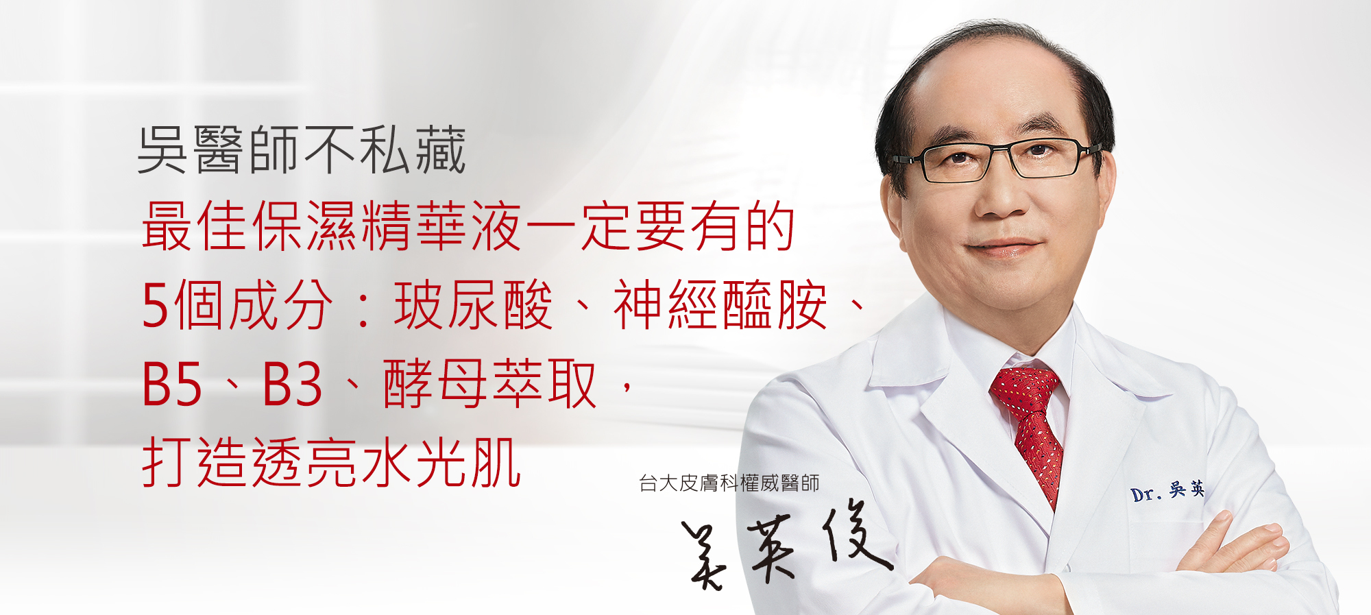 維他命原B5也是近年很熱門的保濕修復成分,它的保養功效很多元:1.保濕鎖水,B5可以促進表皮屏障的增生,改善角質層的水合能力,增強保濕能力,而且分子小容易被肌膚吸收。2.修復抗老,它能修復乾燥引起的泛紅,也能淡化細紋,因為修復鎮靜的能力強,常見於醫美術後產品和小孩尿布疹的屁屁膏中。3.提升防曬力,實驗證實將B5加進防曬產品中可增強防曬力,加強肌膚對紫外線的抵禦能力。4.有強健頭髮,洗護髮產品中也很常見B5的存在,因為它可強健髮根、潤滑毛鱗片,讓髮絲更平滑柔順。