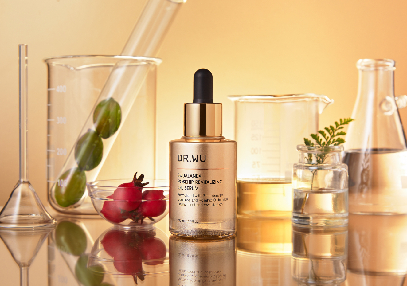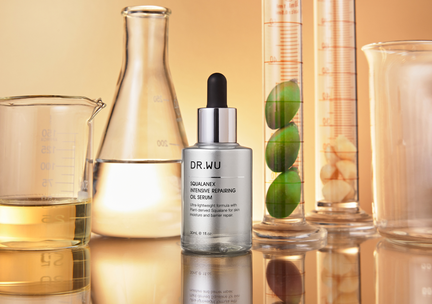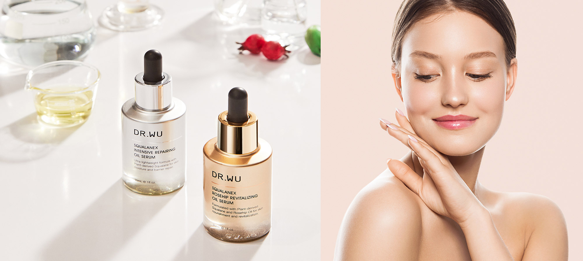 1. 親膚性高的油脂:角鯊烯在人體皮脂中約含有10-13%,是一種人體可以自行合成的天然油脂,能防止皮膚氧化,減緩紫外線造成的傷害,是肌膚表層防護膜的重要成分,可以從鯊魚肝、橄欖、甘蔗中萃取而來,但穩定性低、容易氧化反而有致痘風險,很難運用在保養品中。因此使用經過氫化處理的角鯊烷於保養品中,更穩定且不易致痘,又因為與皮脂膜原有的成分相似,不但親膚好吸收,使用感更比大部分油脂舒適。而DR.WU的角鯊植萃修復系列嚴選ECOCERT認證法國頂級植萃角鯊,親膚性高能有效率地被肌膚吸收、改善乾燥粗糙,並能作為載體幫助提升其他活性成分滲透進而提高保養效能。