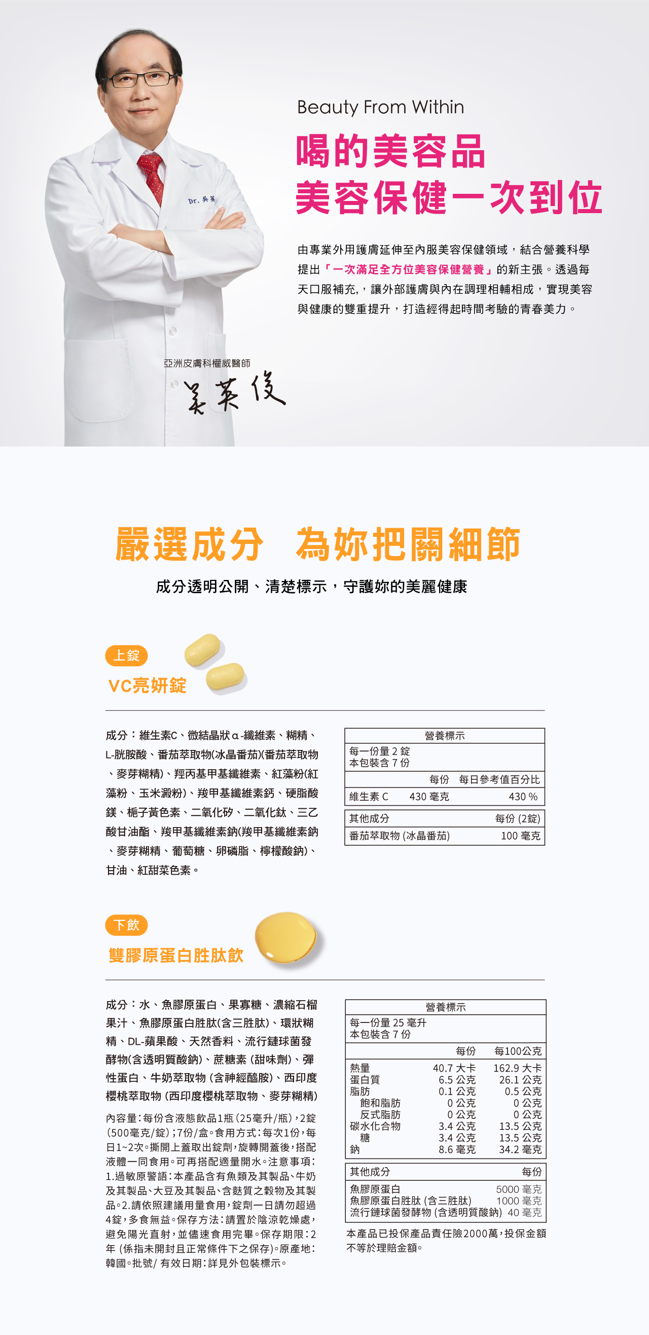 •創新「上錠下飲」,VC亮妍錠+膠原飲,1+1>2