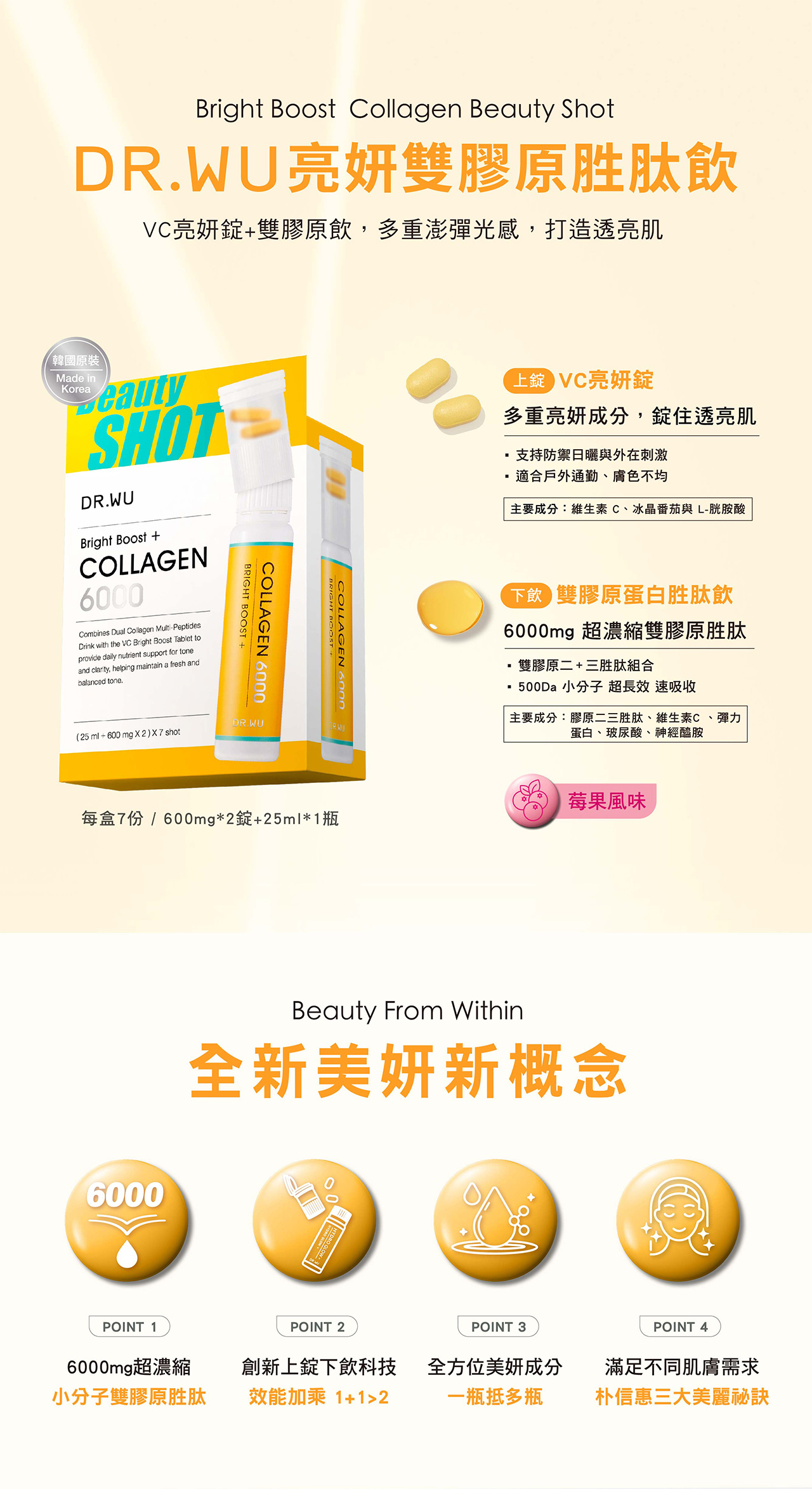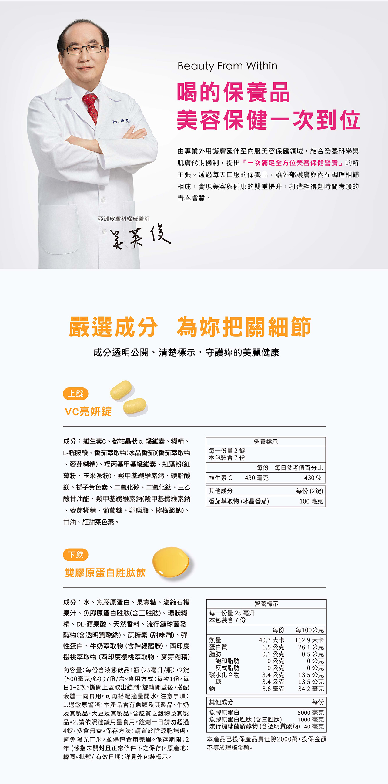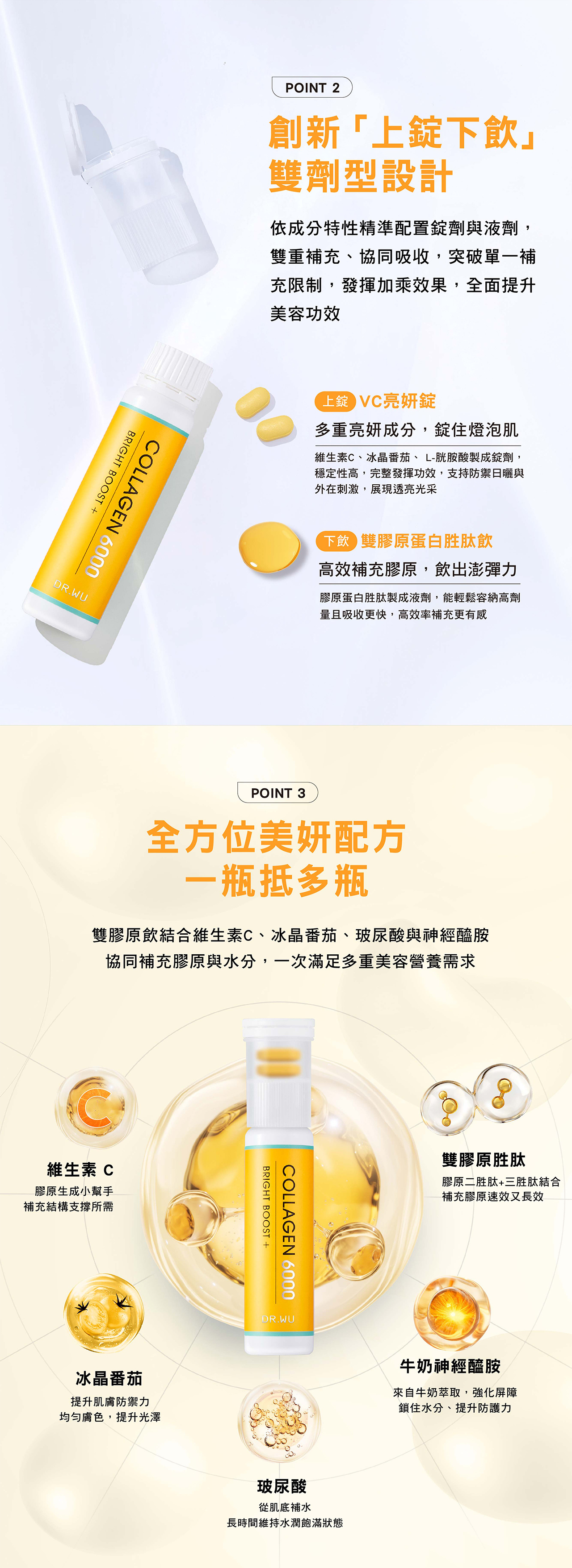 VC亮妍錠+雙膠原飲,多重澎彈光感,打造透亮肌