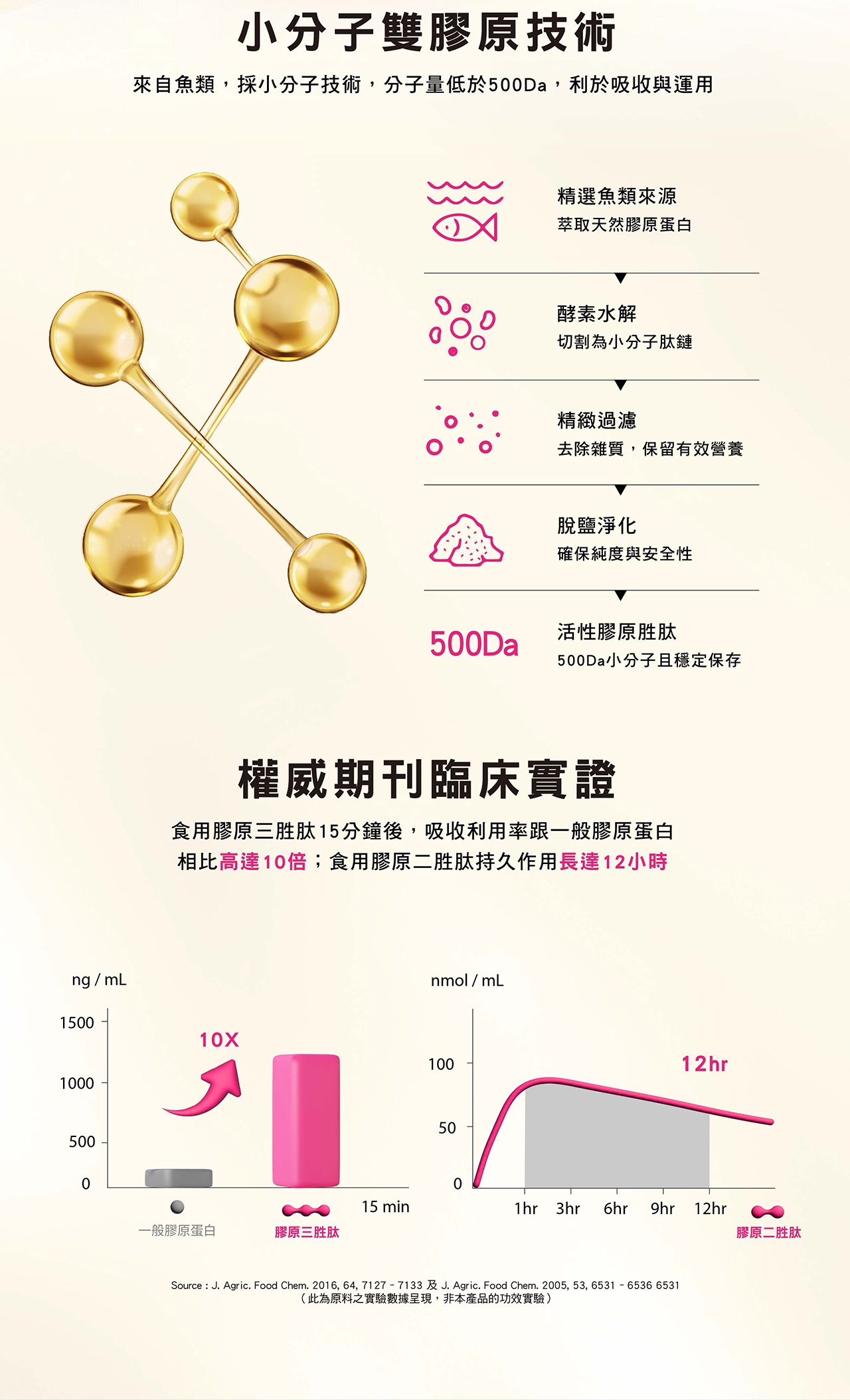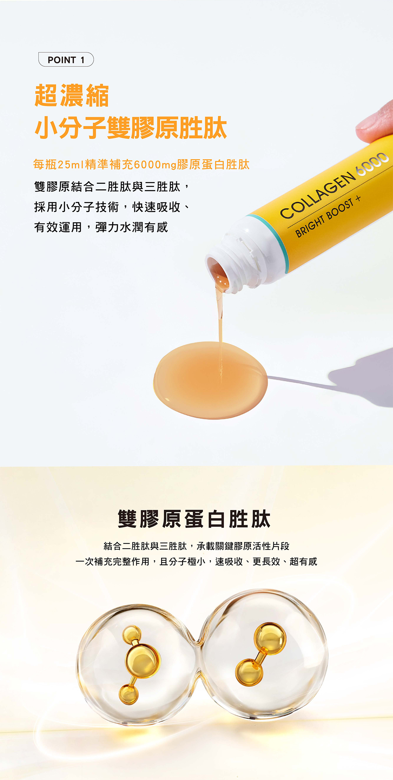 •6000mg超濃縮雙膠原胜肽,500Da小分子,10倍速吸收