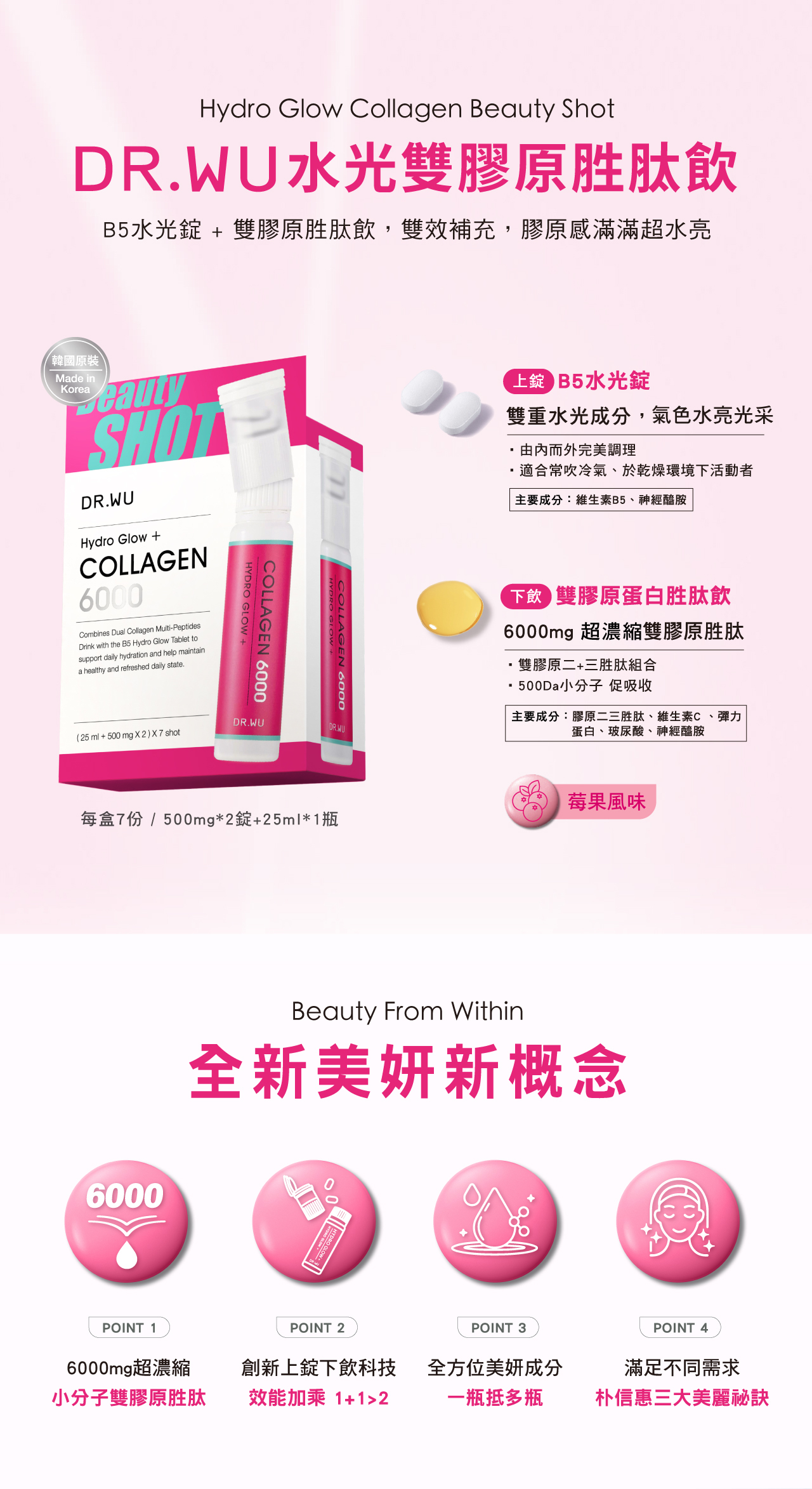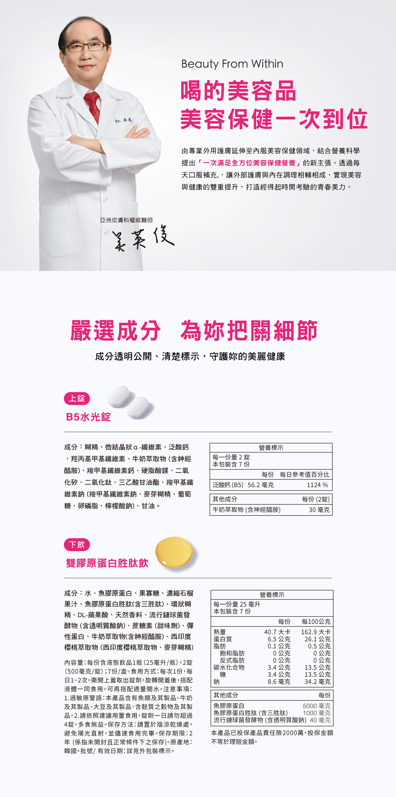• 創新「上錠下飲」,B5水光錠+膠原飲,1+1>2