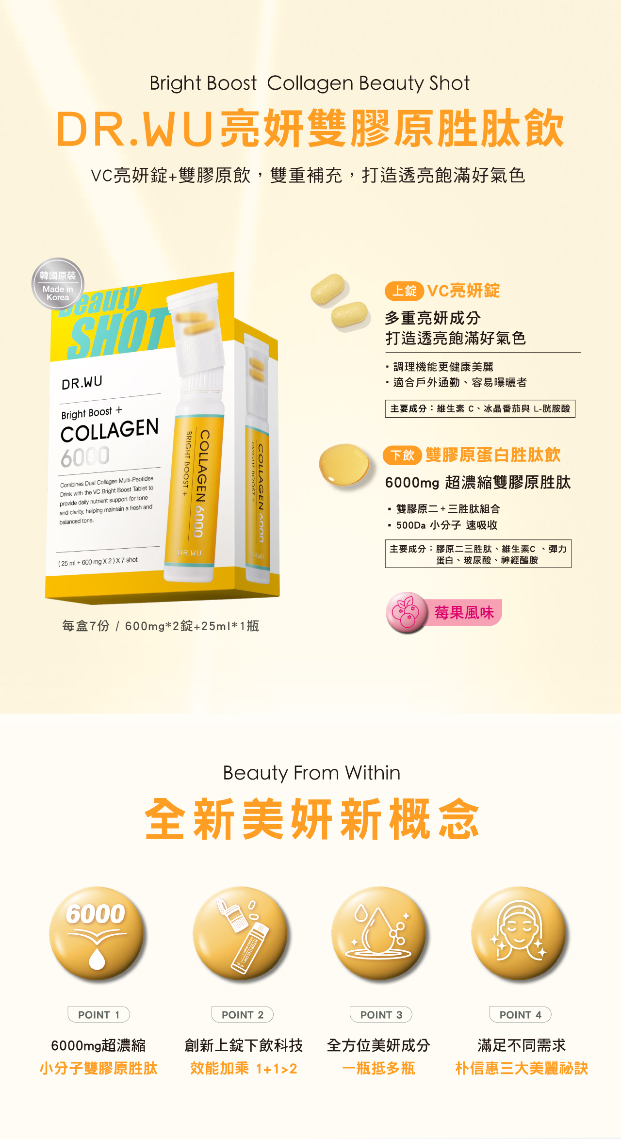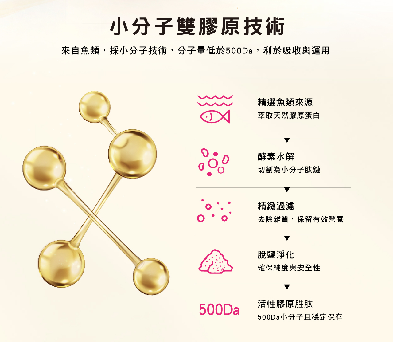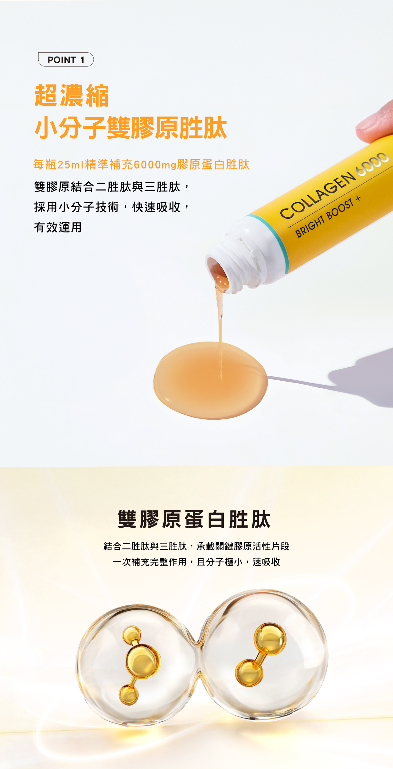 •6000mg超濃縮雙膠原胜肽,500Da小分子,快速吸收