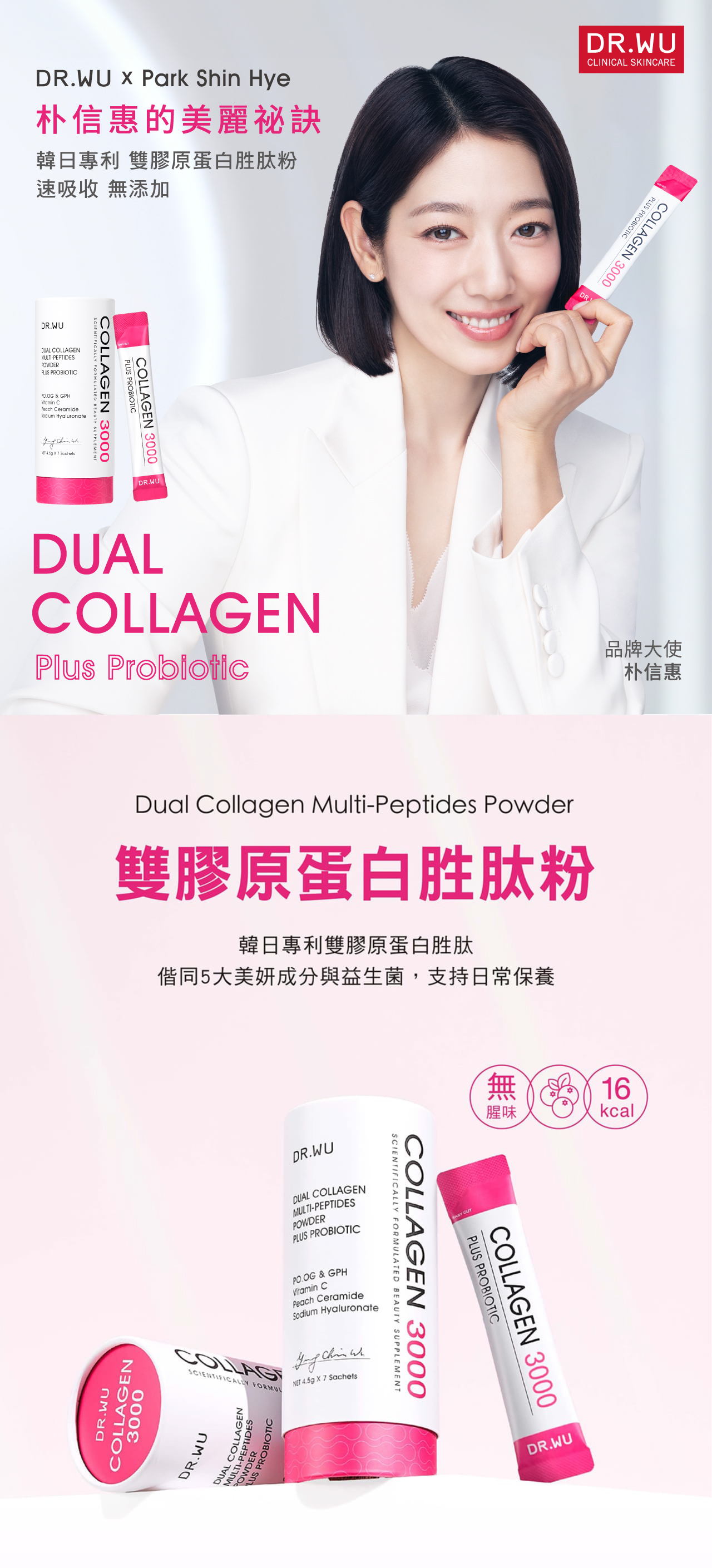 嚴選韓日專利雙膠原胜肽,500Da小分子好吸收,搭配桃子神經醯胺、玻尿酸、維生素C等五大美妍成分,全面調理機能。
