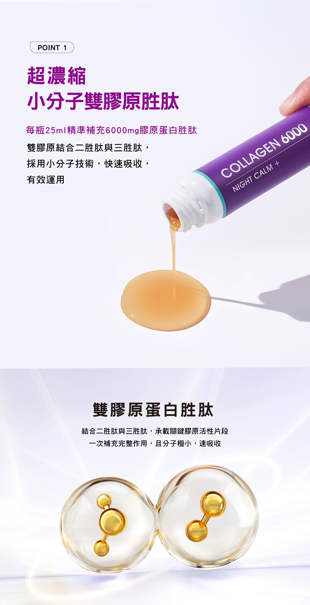 •6000mg超濃縮雙膠原胜肽,500Da小分子,快速吸收